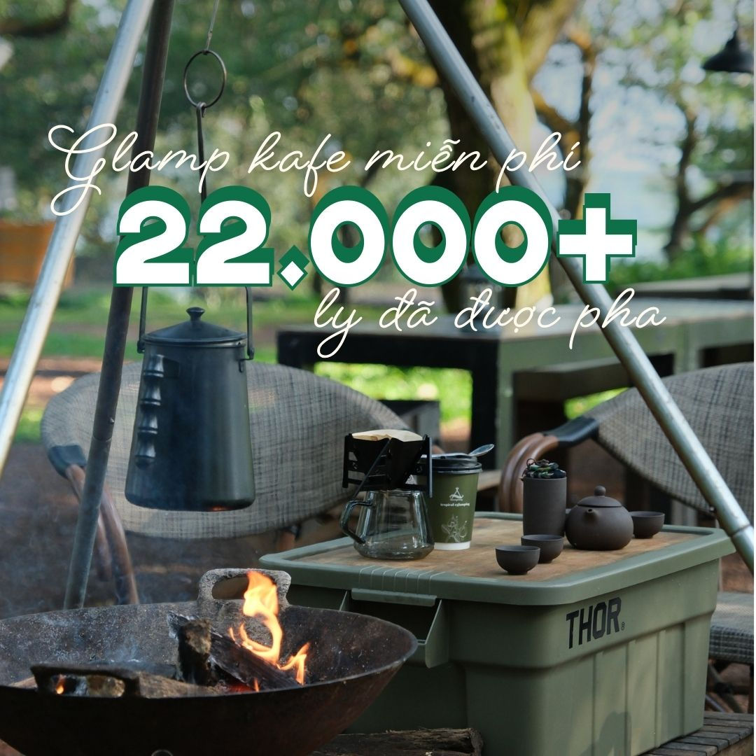 22.000 ly Glamp kafe đã được phục vụ như một lời chào mỗi buổi sáng và một lời mời sống chậm giữa thiên nhiên.Đó không chỉ là cà phê, mà là một phần trong trải nghiệm chăm sóc từng khoảnh khắc nhỏ của Trại.